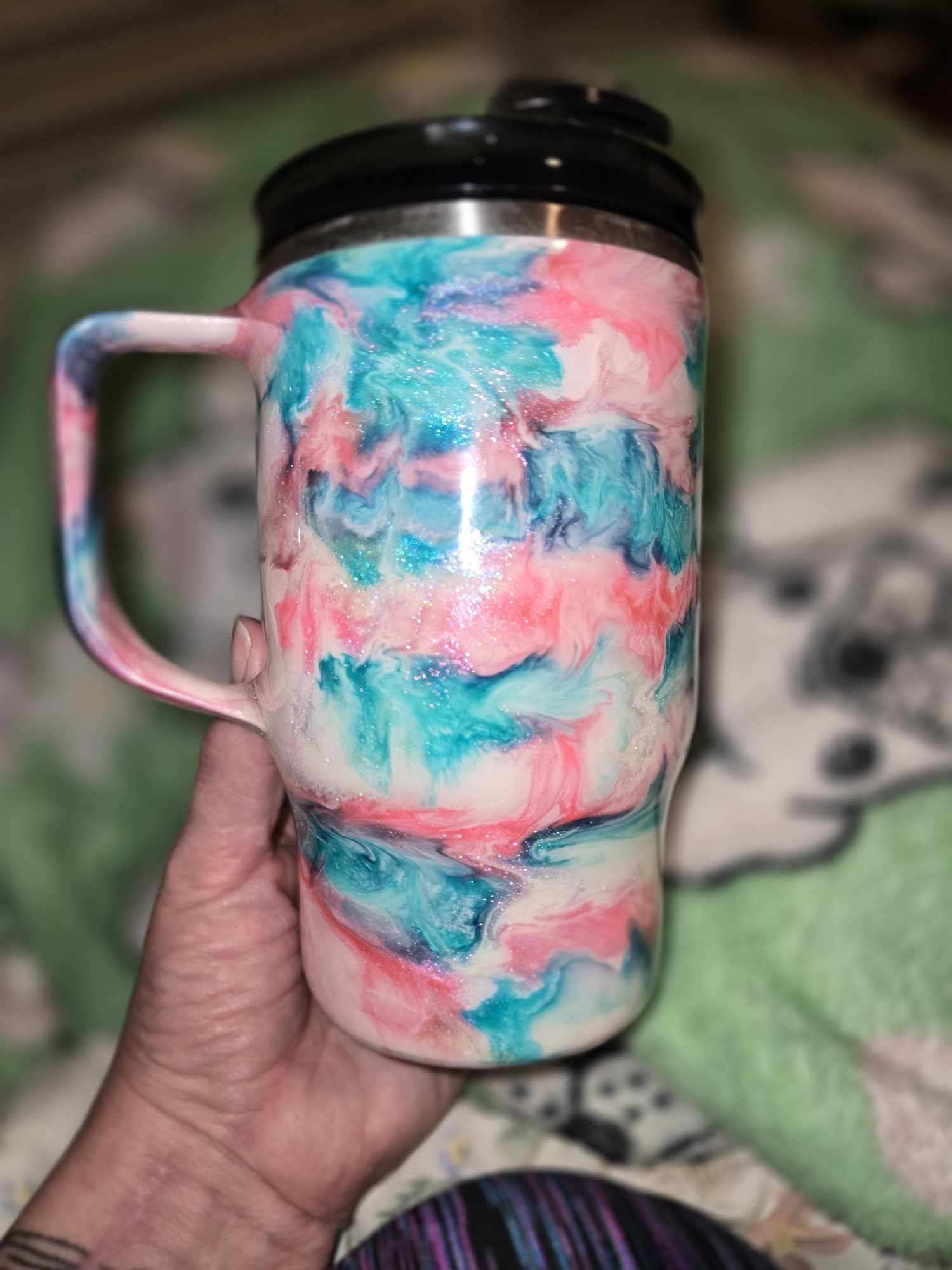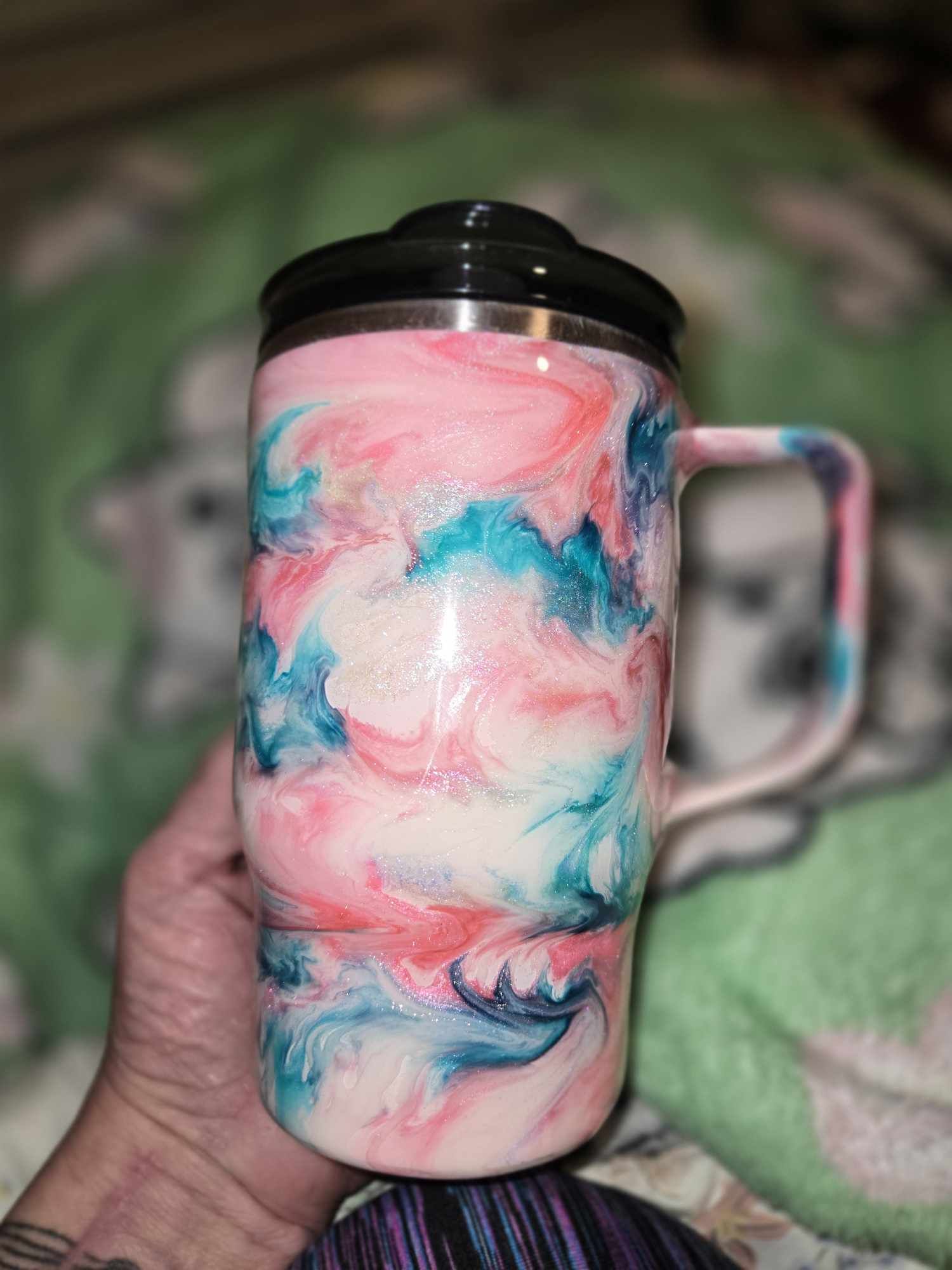 16 oz double walled stainless steel tumbler.